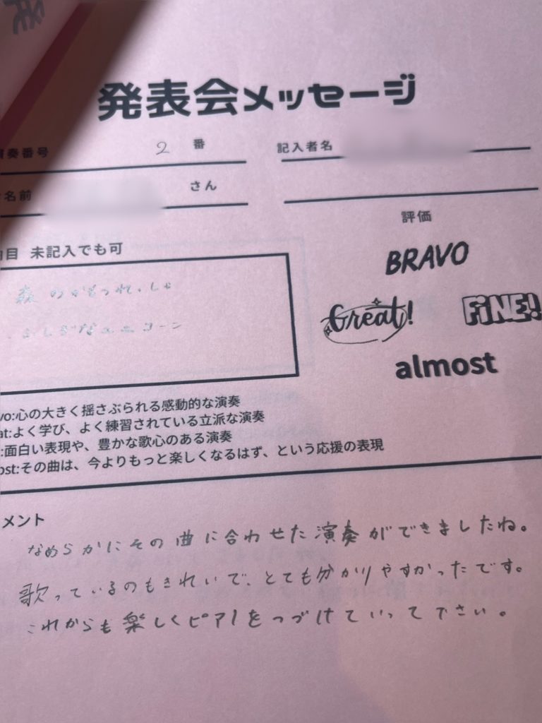 教室の外で生徒さんの演奏をお聴きすると、ステージの魔力も手伝ってか、皆さん張り切って、熱演を聴かせてくださるので、とても嬉しい一日となりました❤️