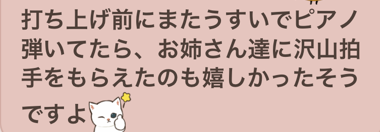 出番を待つ間、「ああ、ドキドキする。」「ボク、ネクタイしてきたんだよ🎵」「どうして年長さんなのに、むずかしい曲を弾いているの❓」「”あつこ先生”だよ、あきこじゃないからね」など、お喋りが止まらない様子😅