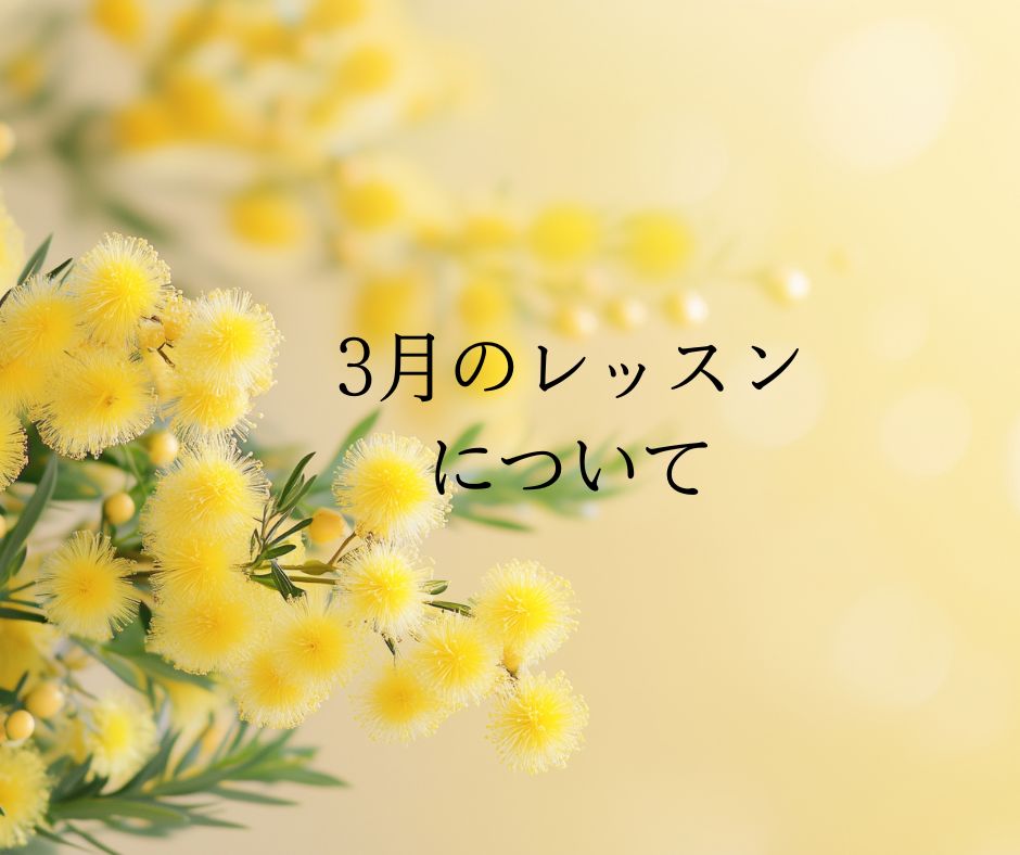 3月のレッスンについて(教室) お知らせ 教室 2026年2月27日2026年2月27日 【3月のレッスンについて】 3月は、お休みの週を含めても年間41回となる曜日があるため、年間40回調整として、先月末に「再検討」とお伝えしていました週を「フォロー時間」といたします。 土曜日は、年間40回内の回数となります。 年度途中入会の方、ご欠席の多かった方を優先的に、 必要に応じてフォローの有無を、次回レッスン時に決めてまいります。 よろしくお願いいたします。
