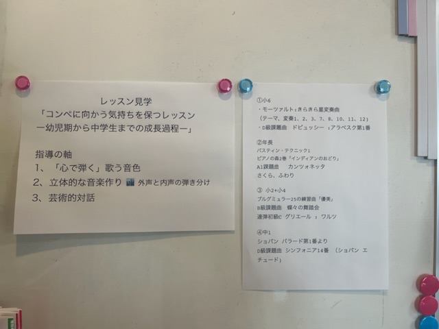 「生徒さんが、綺麗な音色で美しい旋律と立体的な音楽を作るために、内声、低音部に至るまで、拍子の捉え方から音楽の方向性をレッスンなさっていらして大変勉強になりました。」との有難いお言葉をいただきました。