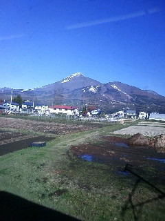 永瀬まゆみ先生の導入期の楽譜の、ピティナ主宰のセミナーがあり、ずっと使い方が今ひとつ掴めずにいたので、迷った挙げ句、行って来ました。うーーん、ちょっと遠かったです。のどかな風景が続く中bus.gif、磐梯山の山頂には雪が!しかし、晴天の今日、ダウンジャケットは大袈裟だったかもcoldsweats01.gif