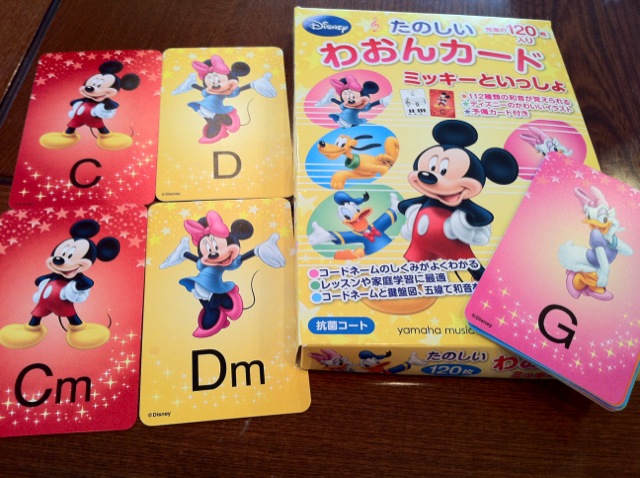 他には、「ミッキーといっしょ わおんカード」で、メジャーとマイナーの簡単なコードを聴き分けて、カードを取るゲームをしたり、