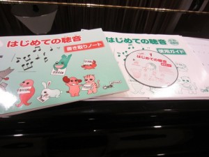永瀬まゆみ先生の「はじめての聴音〜ゲーム感覚で学べる〜[書き取りノート]」を使って、みんなでせっせと、何問も、聴音(音を聴いて、五線紙に書き取る)の問題をやりました。