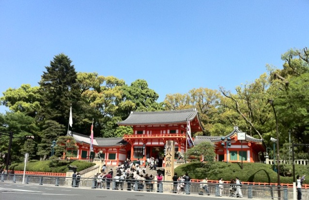 いつもとおった朱塗りの八坂神社は、艶かしい風情で、祇園の街に荘厳な艶を与えていました。