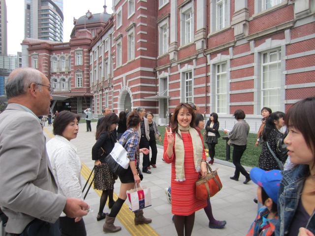 新しく復元された丸の内の駅舎を、外から見たかったのですが、駅の中から内側を一部撮れただけでした