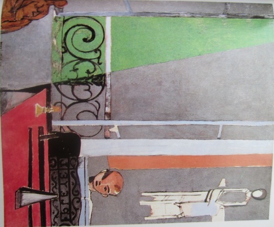 この絵は、マチスの「ピアノのレッスン」という絵です。グレーのバックの色と、練習しているボクの無表情ぶりから、いやいや練習している様にも見えます