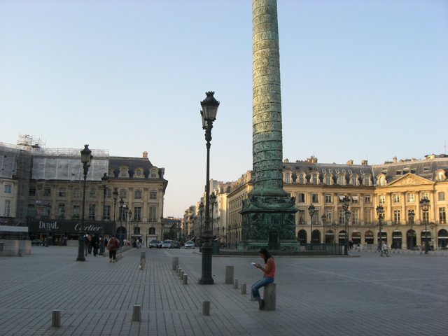 さて、今日の画像は、パリのヴァンドーム広場です。中央のコロン(ナポレオンのオーステルリッツ戦勝記念の柱)を囲む四角い広場です。周りは、グラン・サンク(パリの老舗5大宝飾店