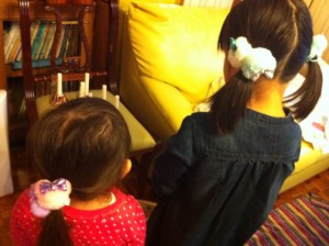 姉妹ではないんです。偶然ミニーちゃんのゴムが色違いでした♪