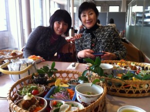 海峡レストランで、フグのお刺身などかごに入った素敵なお弁当を、先生方から御馳走になっちゃいました!