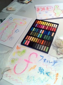 今日は、レッスンで、「楽語クラブ」の影響もあり、フォルテやスタッカートなど、70色のパステルで、可愛い楽語イラストの時間を設けました