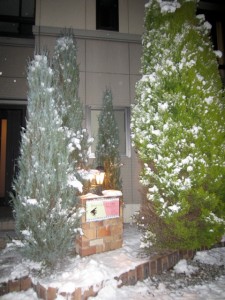 郡山に帰って来ると、前日からの雪で、家の前の木が、クリスマスツリー状態!