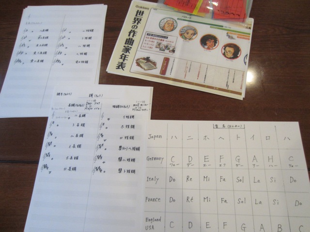 表のお話からヒントを得て、早速、音名や、調号の表を作成しました♪