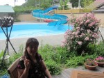 まだ水の入っていないプールサイドでパチリ♪あらら、顔が影に