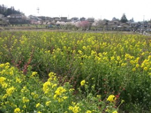 童謡の「朧月夜」で歌われる様な、菜の花畑は、平成の世では、なかなか見る事が出来ませんね。これは、花見山近くの菜の花畑です。